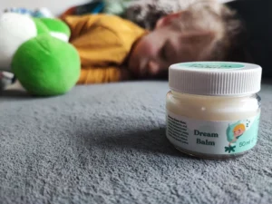Keresel valamit, ami az esti rutin részévé válhat? A Dream Balm egy 100% természetes bőrápoló balzsam nyugtató levendula illattal, már 3 hónapos kortól. Felkened a talpára vagy mellkasára lefekvés előtt – a kellemes illat és a gyengéd masszázs kettőtök közös pillanata. Semmi harc. Semmi könyörgés. Csak egy békés esti rituálé.