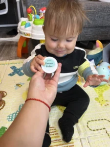 A Dream Balm természetes, bőrbarát összetevőkből készült. Ha bizonytalan vagy, első használat előtt végezz tesztet: kenjél egy kis mennyiséget a gyermeked alkarjára, és várj 24 órát. Ha nem jelentkezik bőrpír vagy irritáció, nyugodtan használhatod.